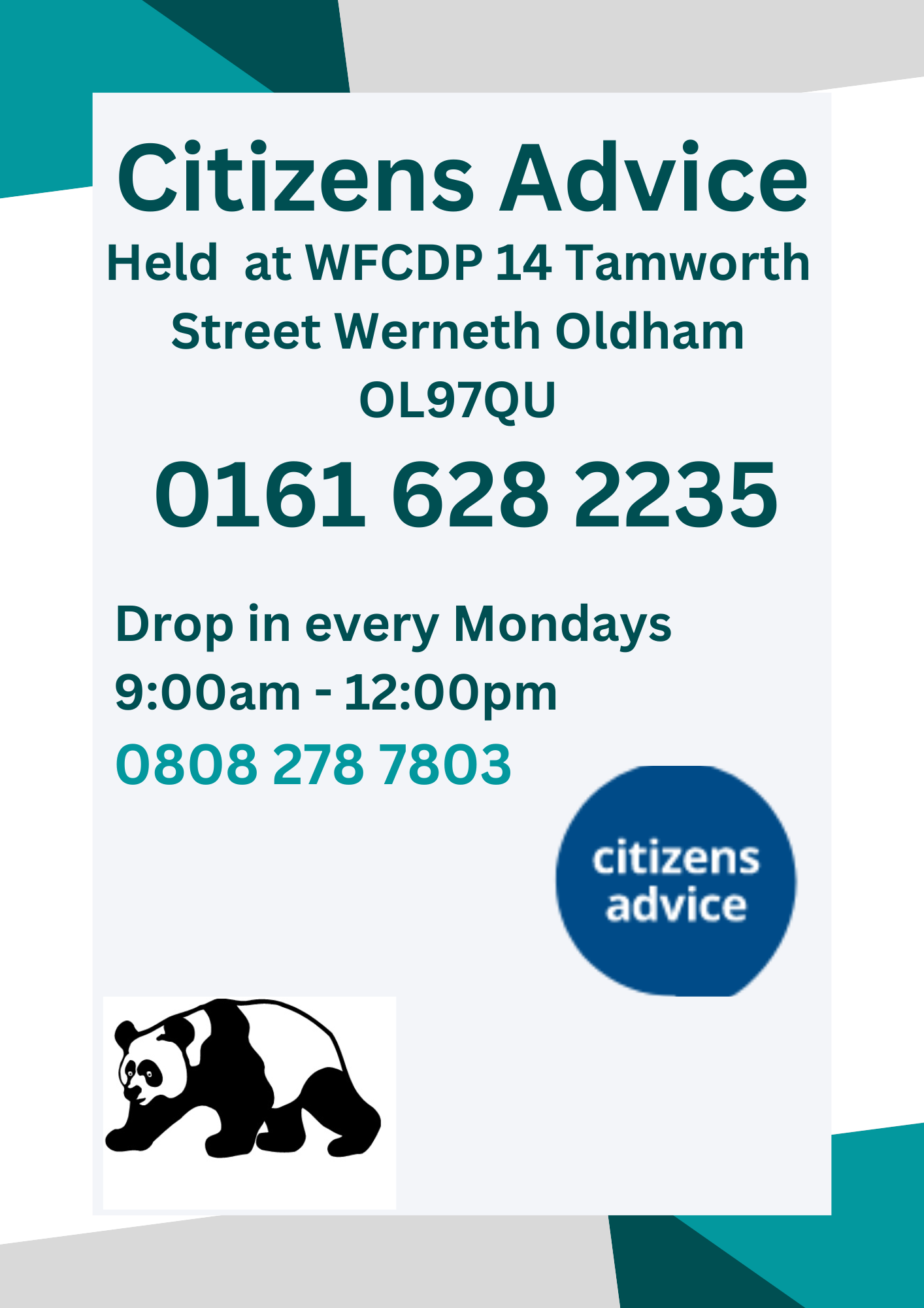 Citizens Advice drop ins every Monday’s 9:30 – 12:00!